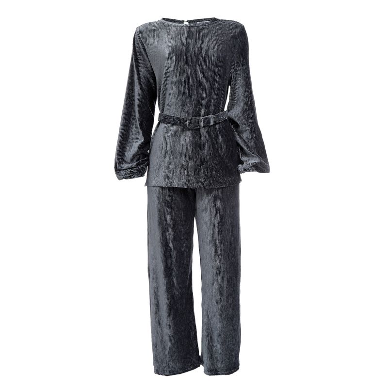 FemininoRoupasConjuntosConjunto Blusa com Cinto e Calça Veludo Azul