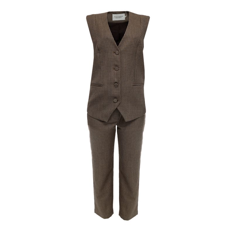 Conjunto Colete, Blazer e Calça Chevron Marrom