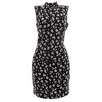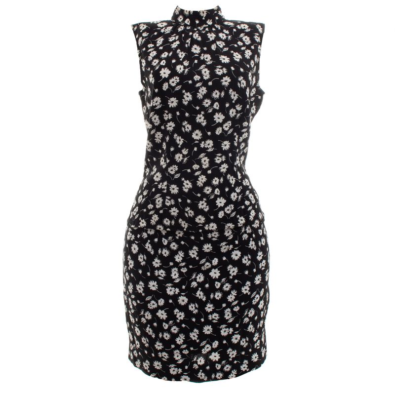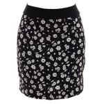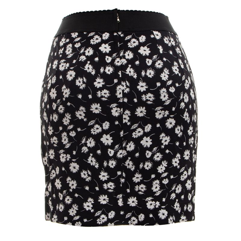 Conjunto Dolce & Gabbana, composta por blusa e minissaia. Confeccionados em seda preta estampada de flores, a blusa conta com gola alta, sem mangas e fecho por zíper invisível traseiro. A saia possui cós elástico e fecho por zíper atrás. A peça se encontra em excelente estado, muito bem conservada.