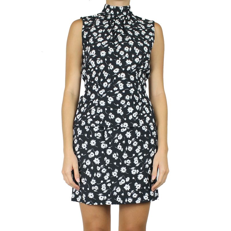Conjunto da marca Dolce & Gabbana, aproximadamente tamanho 38 BR, confeccionado em crepe de seda com estampa floral branco e preto. O conjunto de saia e blusa conta com fecho por meio zíper nas costas. Encontra-se em excelente estado de conservação, sem sinais de uso.