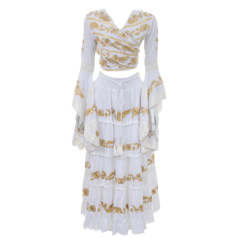 FemininoRoupasConjuntosConjunto Nammos Branco e Bordado Dourado