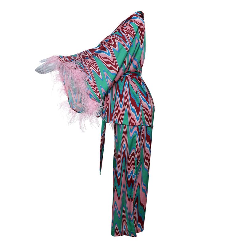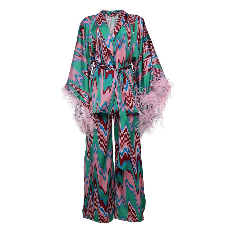 FemininoRoupasConjuntosConjunto PatBo Plumas Estampado Verde