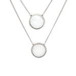 Escapulário da marca Guerreiro. Confeccionado em prata 925 e duas medalhas com sal grosso. Tamanho aproximado da corrente: 69 cm. A peça se encontra em bom estado, com leves marcas de uso aparentes.