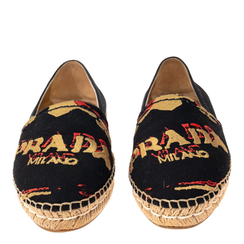 FemininoSapatosSem SaltoEspadrillesEspadrille Prada Bordada Preta