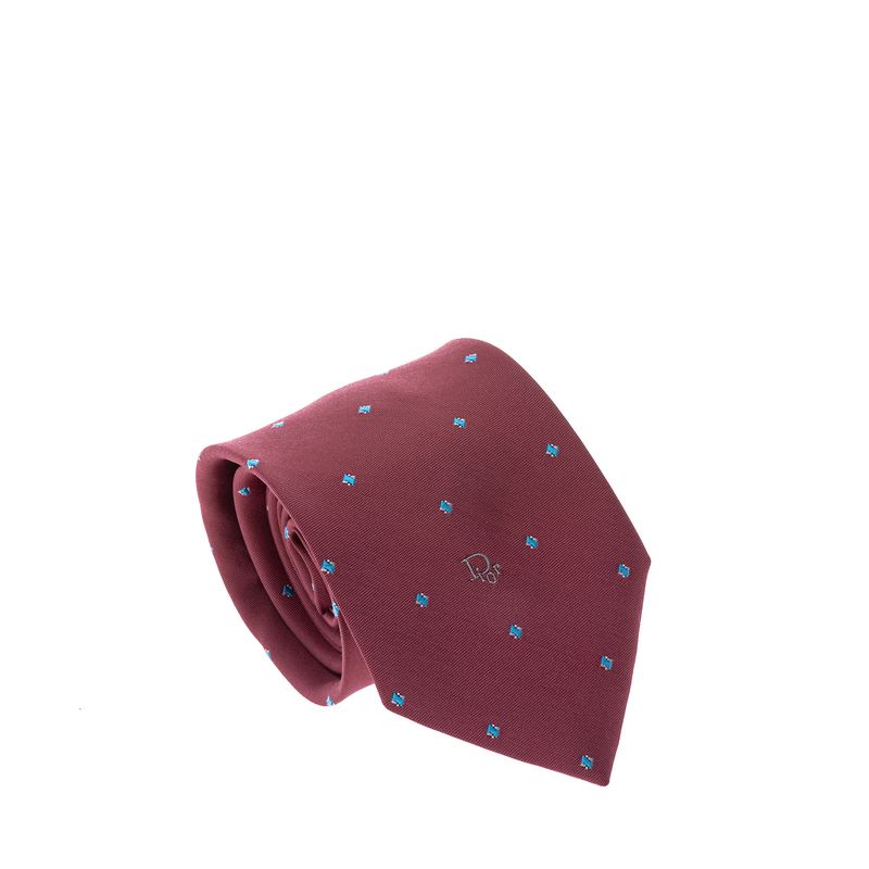 Gravata da marca Christian Dior. Confeccionada em poliéster na cor goiaba com detalhes de pequenos losangos azuis. A peça se encontra em excelente estado, muito bem conservada.