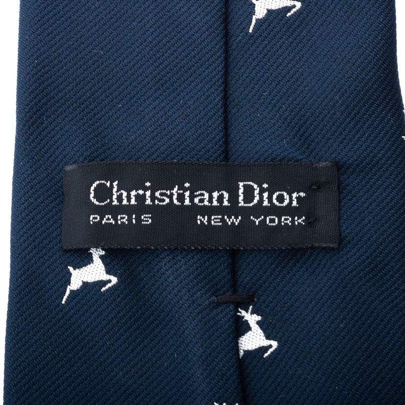 Gravata da marca Christian Dior, modelo Vintage. Confeccionada em seda na cor marinho, com estampa de veados brancos ao longo de todo o seu comprimento. A peça se encontra em muito bom estado, com leves marcas de uso aparentes.