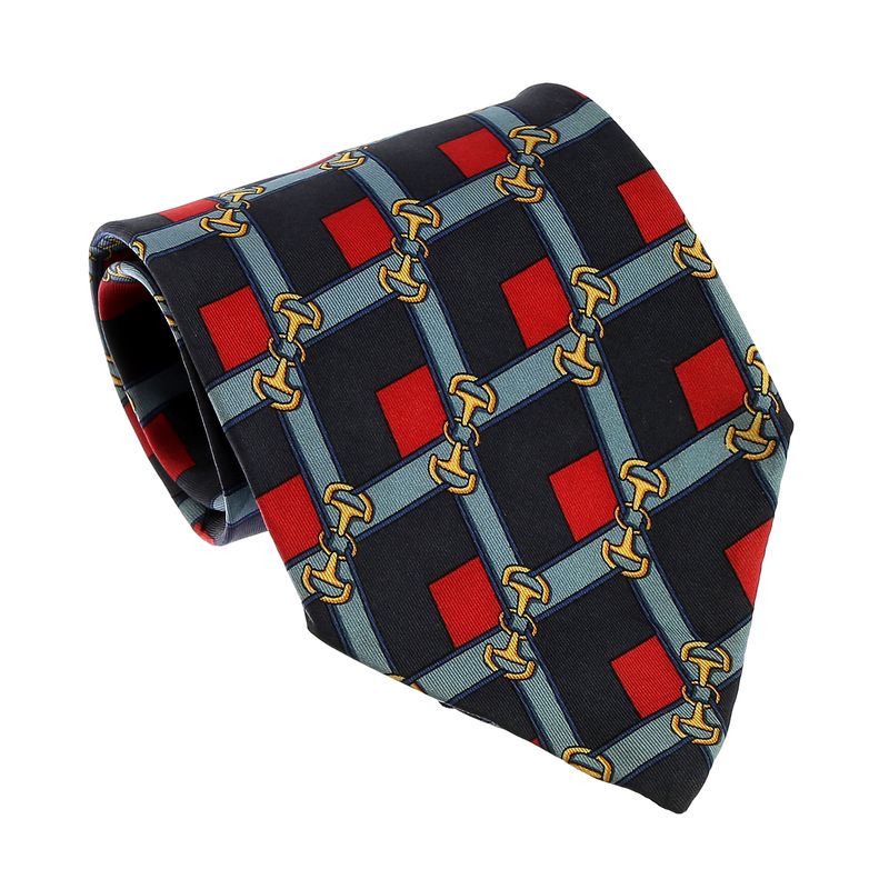 Gravata Gucci Vintage Azul Vermelha e Horsebit