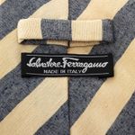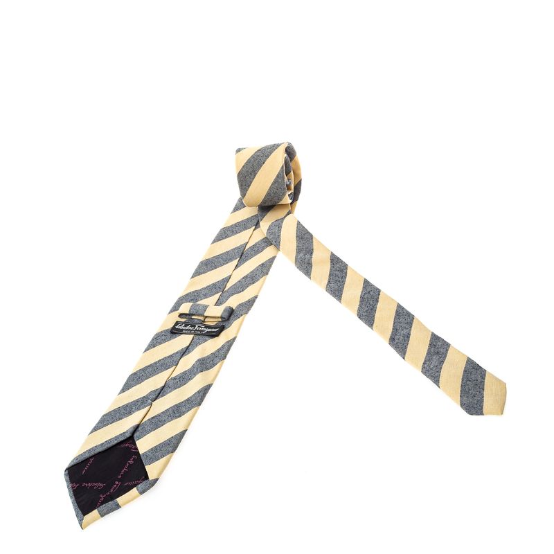Gravata da marca Salvatore Ferragamo. Confeccionada em tecido listrado nas cores bege e azul. A peça se encontra em ótimo estado, com levíssimas marcas de uso.