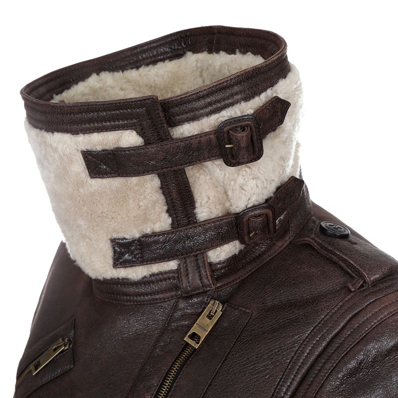 Jaqueta Burberry Couro Marrom e Pelos