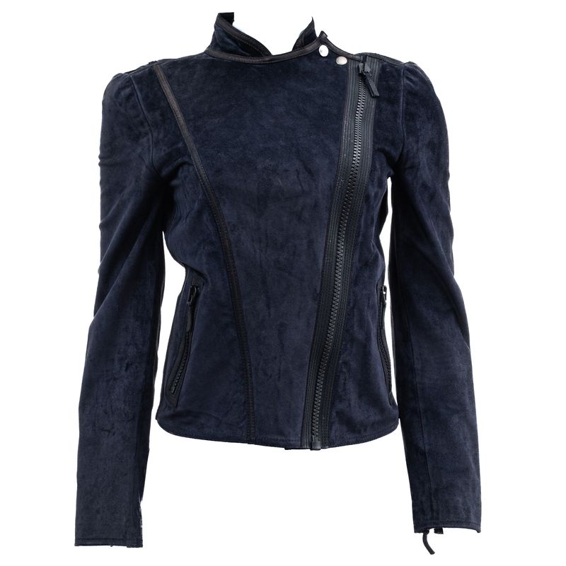 Jaqueta Gucci Vintage Couro Azul e Preto