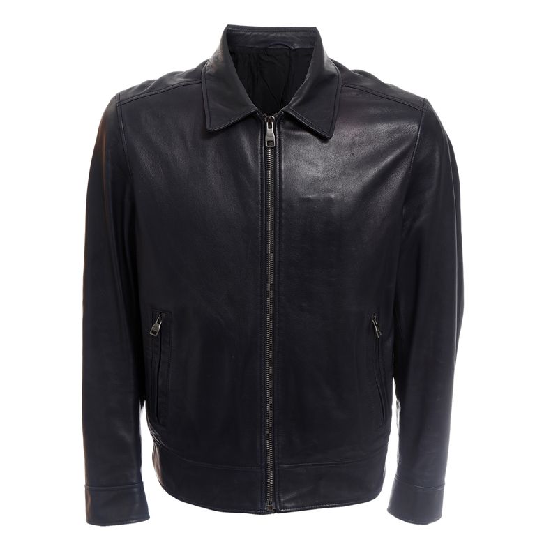 Jaqueta Salvatore Ferragamo Couro Azul Marinho