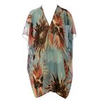 Kimono da marca Adriana Degreas. Confeccionado em seda estampada azul e floral. A peça se encontra em excelente estado, muito bem conservada.