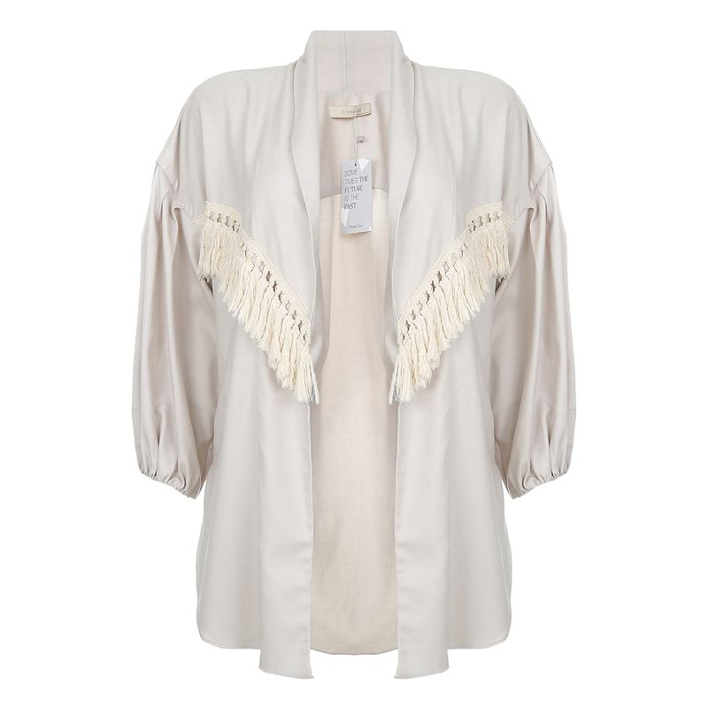 FemininoRoupasCasacos e JaquetasKimono b/yourself Cinza e Franjas