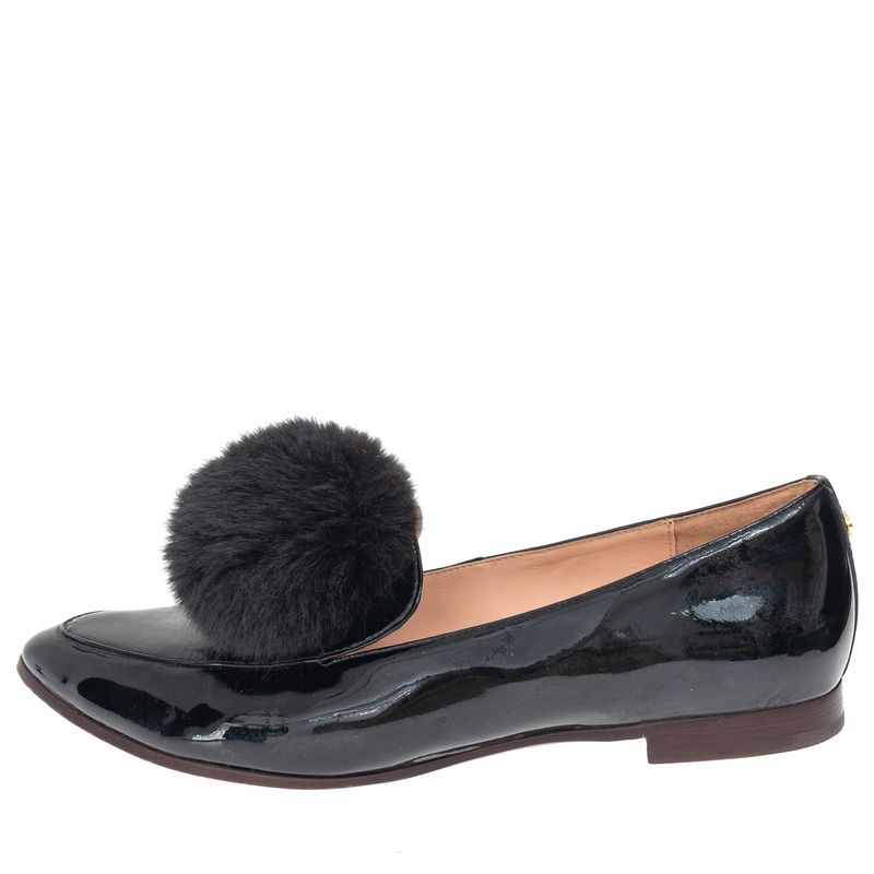 FemininoSapatosMocassimSem SaltoLoafer Kate Spade Pompom Verniz Preto