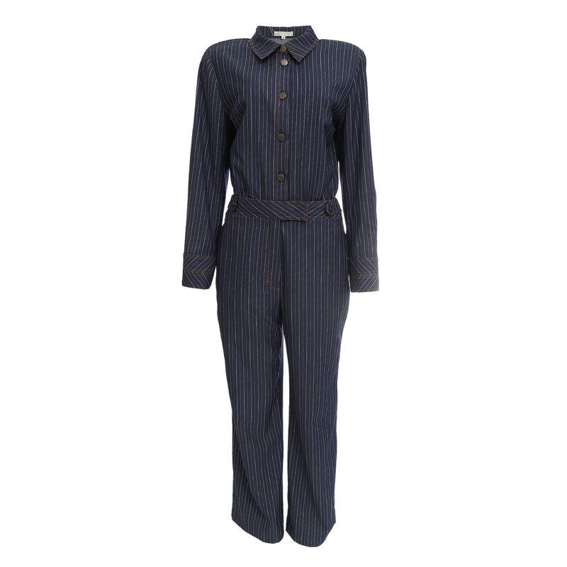 FemininoRoupasMacacõesMacacão NK Risca de Giz Azul