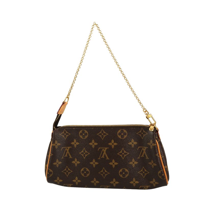 Bolsa da marca Louis Vuitton, modelo Eva, tamanho 25 cm C x 13 cm A, confeccionada em canvas com estampa monograma e ferragens em metal dourado. A bolsa conta com uma única alça de ombro em corrente. Não possui bolsos internos. Encontra-se em excelente estado de conservação, sem desgastes.