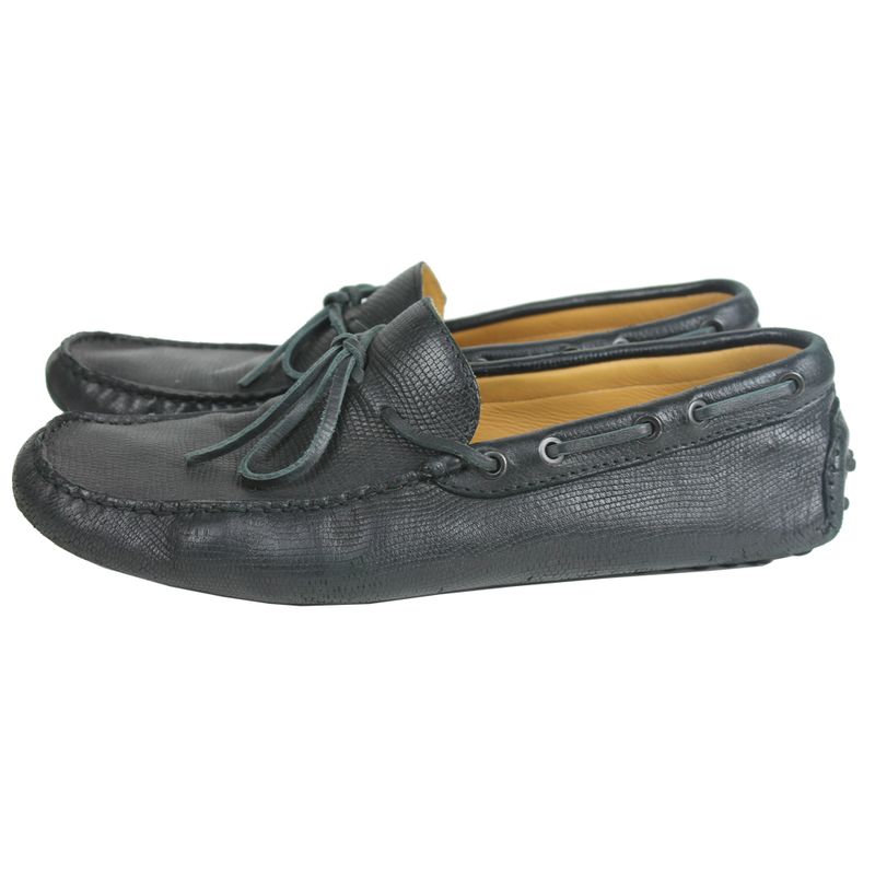 Mocassim masculino da marca Emporio Armani, tamanho 10 sola, aproximadamente 42-43 BR. Confeccionado em couro enrugado na cor preto. Se encontra em ótimo estado de conservação, com desgastes de uso na sola e frente do sapato.