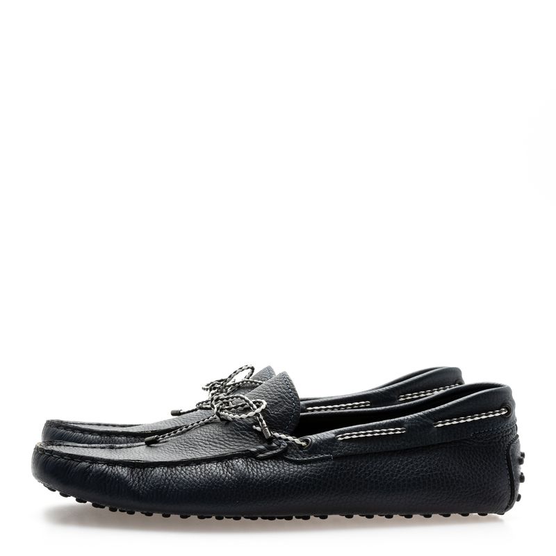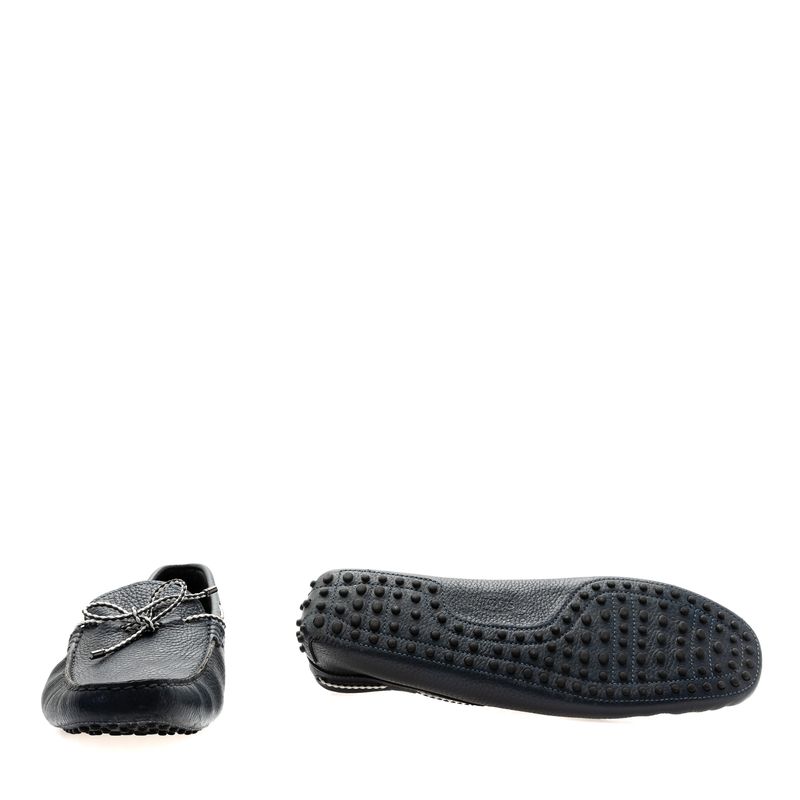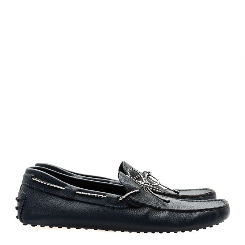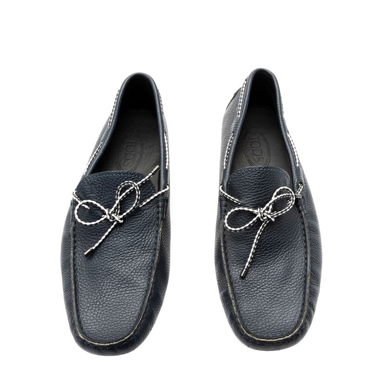 Mocassim da marac Tod's, tamanho 11 aproximadamente 42 Brasil. Confeccionado em couro azul marinho com detalhe de cordnao trançado azul e branco. Encontra-se excelente estado de conservação.