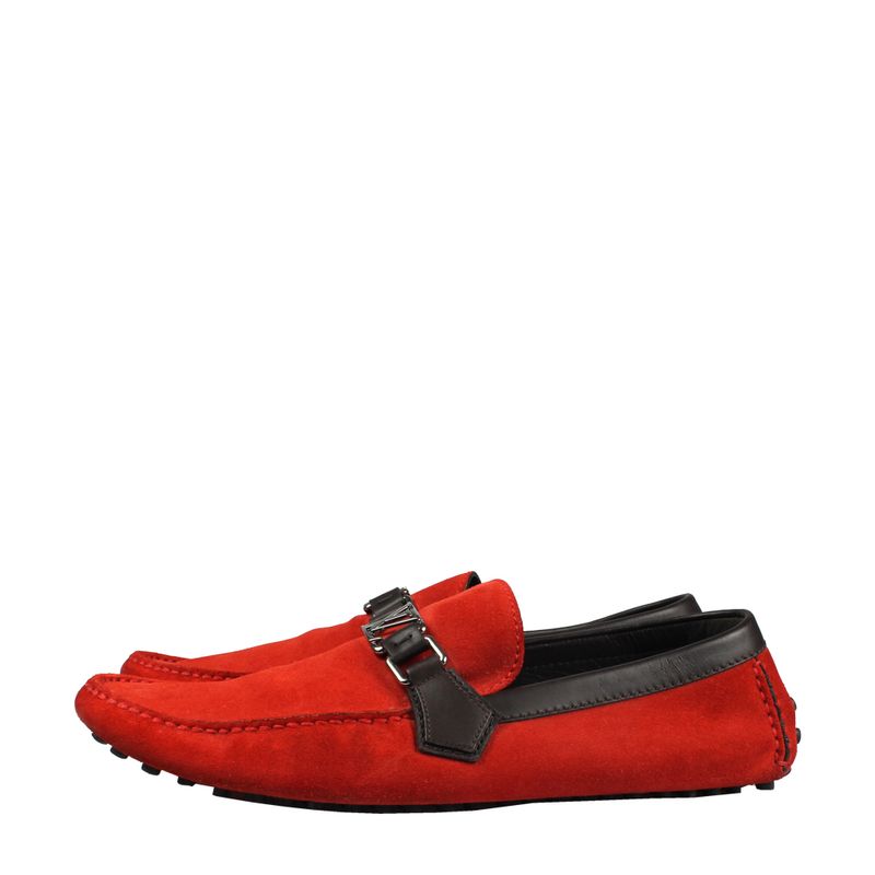 MasculinoSapatosMocassim Louis Vuitton Camurça Vermelho com Couro Marrom