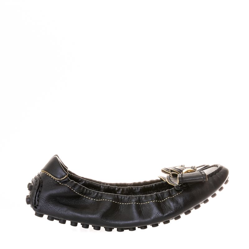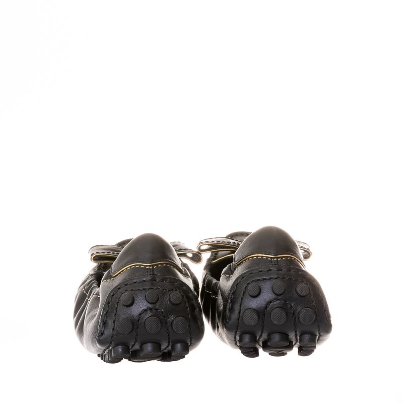 Mocassim da marca Louis Vuitton. Confeccionado em couro na cor preta, elástico ao redor de todo mocassim, laço centro em metal dourado. A peça se encontra em excelente estado, muito bem conservada. Tamanho do produto: 38 sola aproximadamente 36 Brasil.
