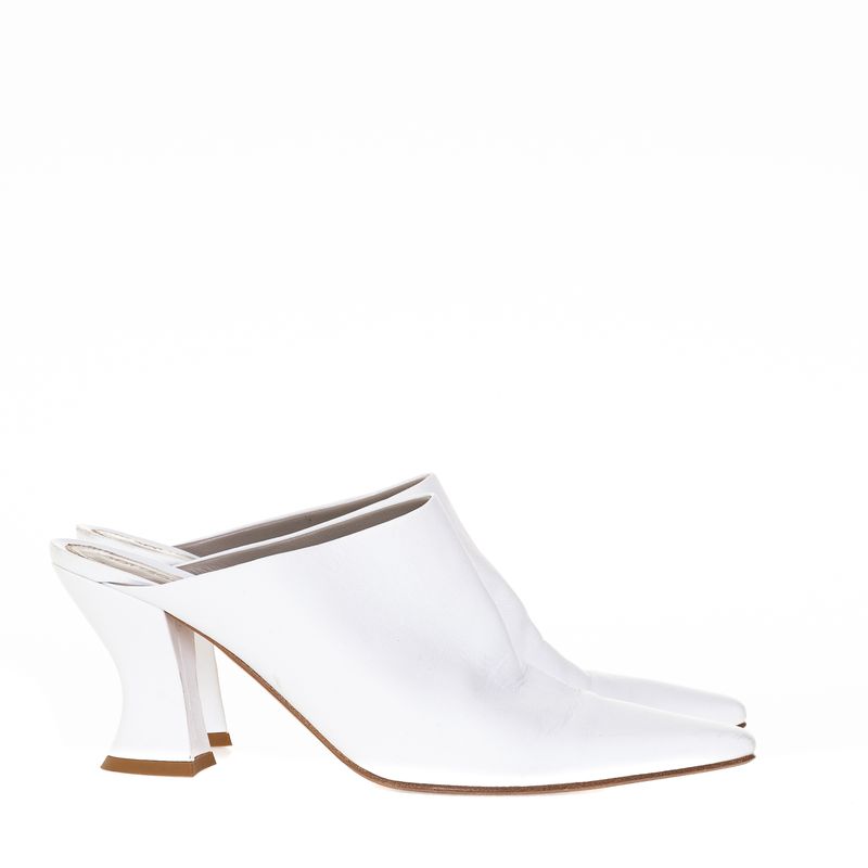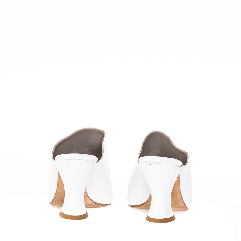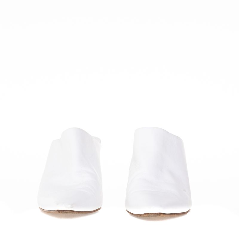 Mule Bottega Veneta Bico Fino Salto Couro Branco