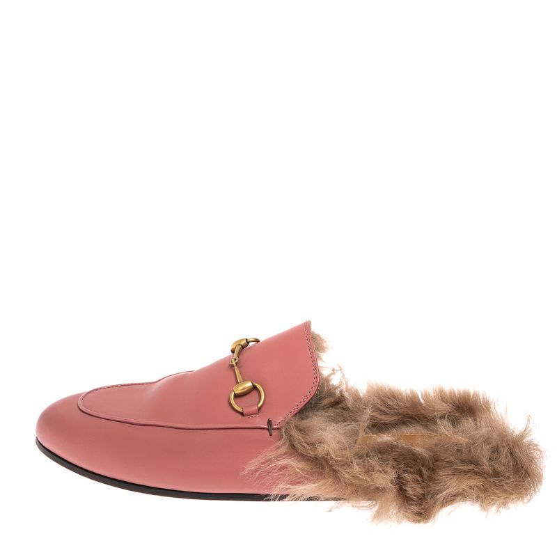 FemininoSapatosSem SaltoSlippersMule Gucci Princetown Pelos Couro Rosa