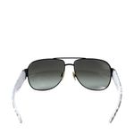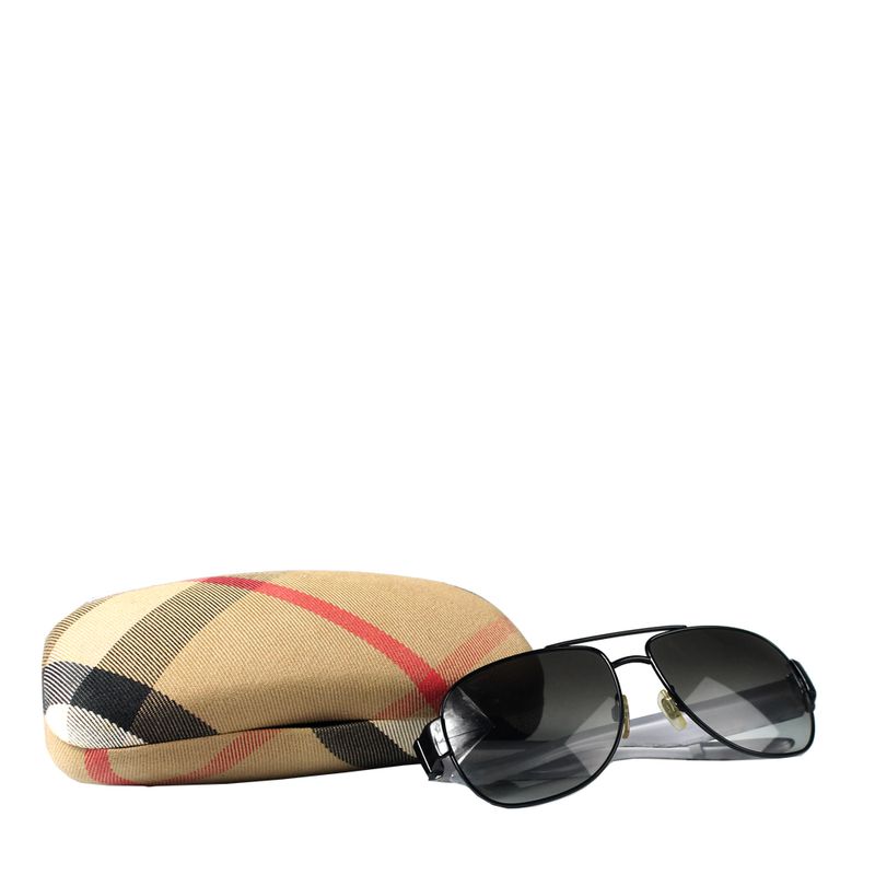 Óculos da marca Burberry, tamanho 14 cm C x 5 cm A, confeccionado em acetato preto com detalhe em couro com estampa da marca.