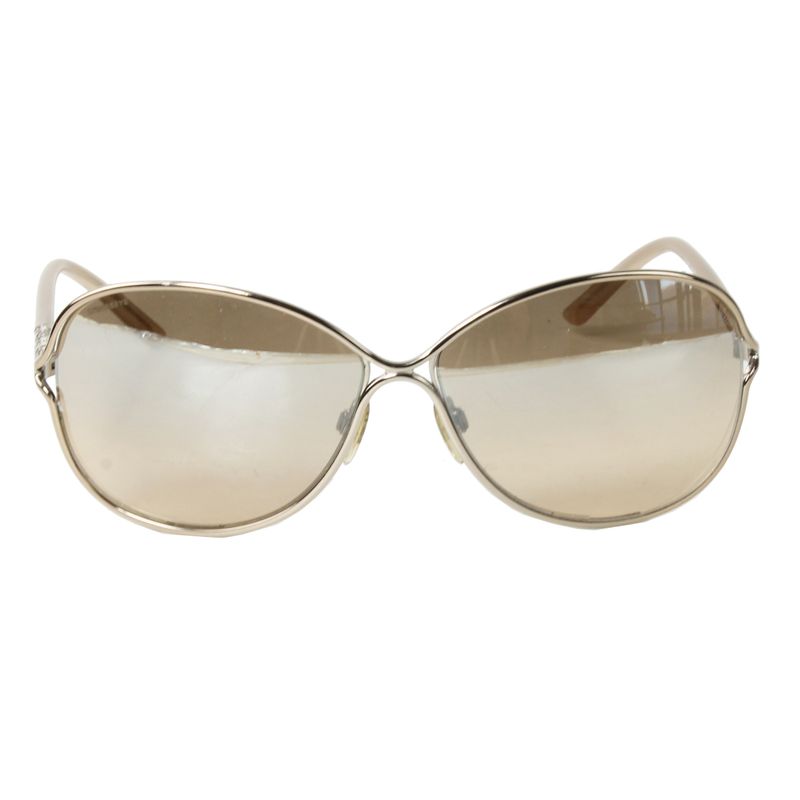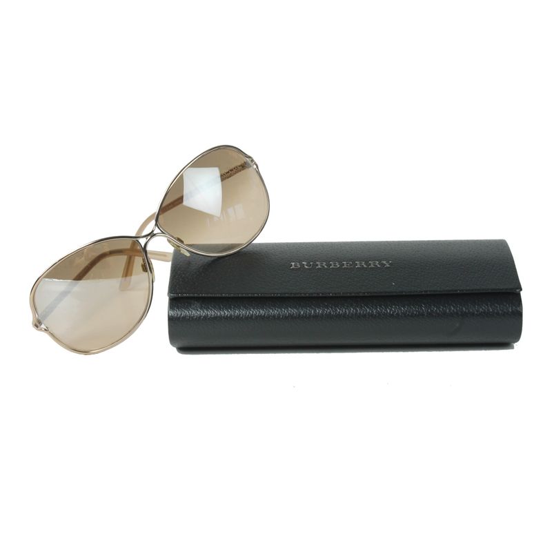 Óculos da marca Burberry, tamanho 14 cm C x 5 cm A, confeccionado em metal rose e lentes rose levemente espelhadas. Encontra-se em ótimo estado de conservação, sem marcas de uso.