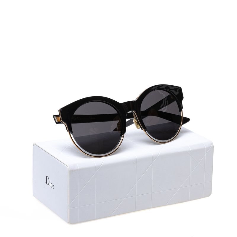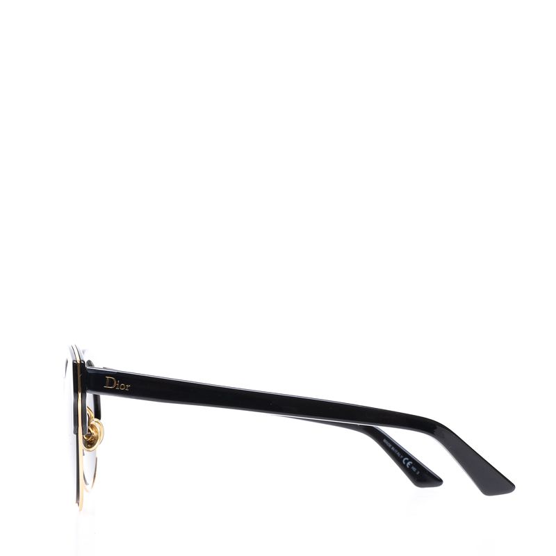 Óculos da marca Christian Dior J63Y1. Confeccionado em acetato preto com detalhe de metal dourado, lentes pretas. Possui tamanho 14 cm C x 5,5 cm A. A peça se encontra em ótimo estado, com levíssimos riscos na armação frontal.