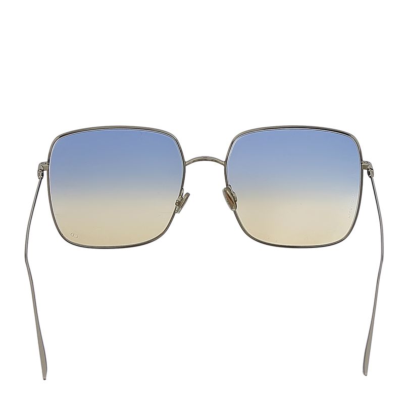 Óculos da marca Christian Dior. Confeccionado em metal prateado e lente colorida degradê. Possui armação em formato quadrado. A peça se encontra em estado satisfatório, com leves marcas de uso aparentes principalmente na lente esquerda.