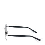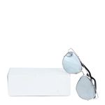 Óculos da marca Christian Dior, tamanho 14,5 cm C x 5 cm A, confeccionado em metal prateado com as lentes espelhadas. O óculos conta com detalhe em acetato preto nas laterais. Encontra-se em excelente estado de conservação, sem sinais de uso.