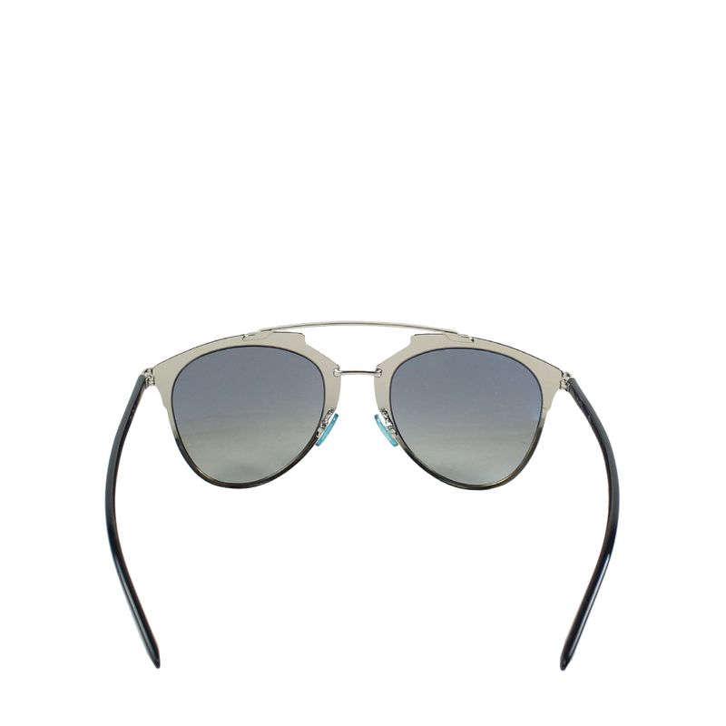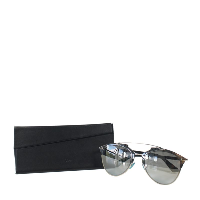 Óculos da marca Christian Dior, modelo Reflected, tamanho 14 cm C x 5,5 cm A, confeccionado em metal prateado com as hastes em acetato preto. O óculos se encontra em excelente estado de conservação, sem marcas de uso.