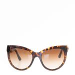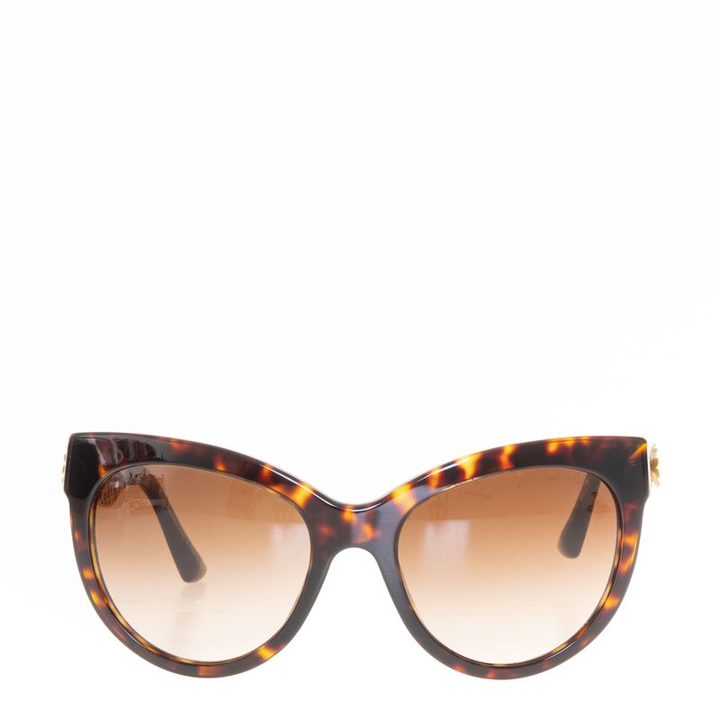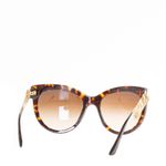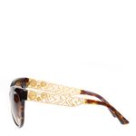 Óculos da marca Dolce & Gabbana, tamanho 14 cm C x 5,5 cm A. Confeccionado em acetato mesclado marrom, hastes em metal dourado floral e lente dedragê. A peça se encontra em excelente estado, muito bem conservada.
