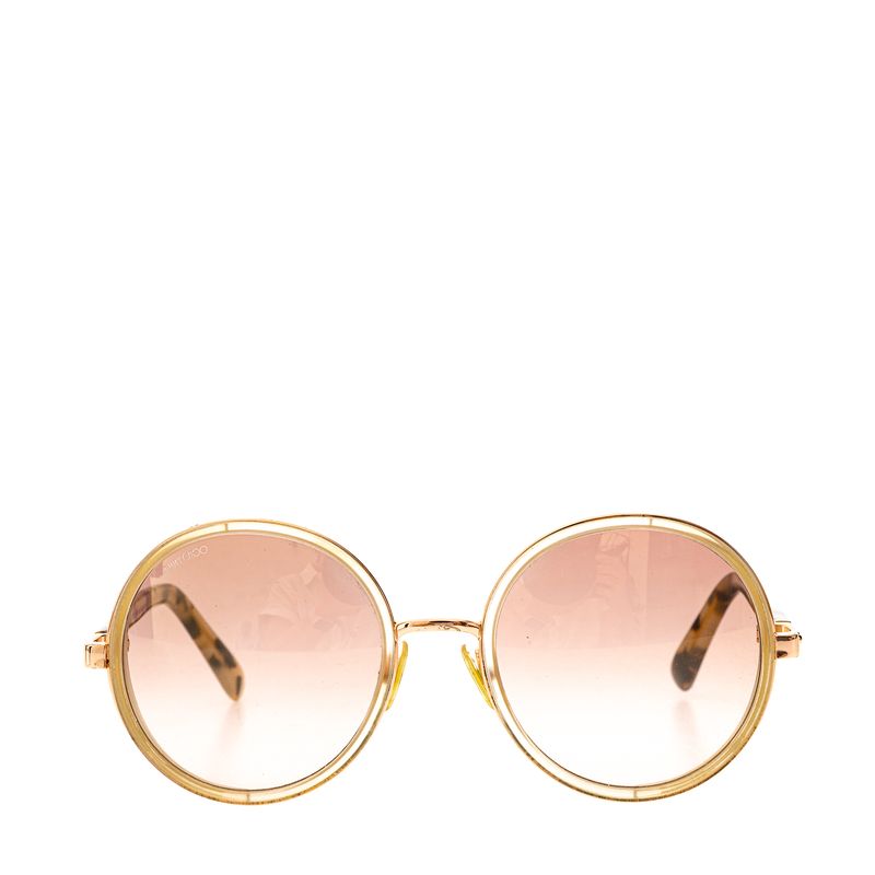 Óculos da marca Jimmy Choo Andie. Confeccionado em acetato bege, com detalhes em glitter e hastes mesclado. A peça se encontra em excelente estado, muito bem conservada.