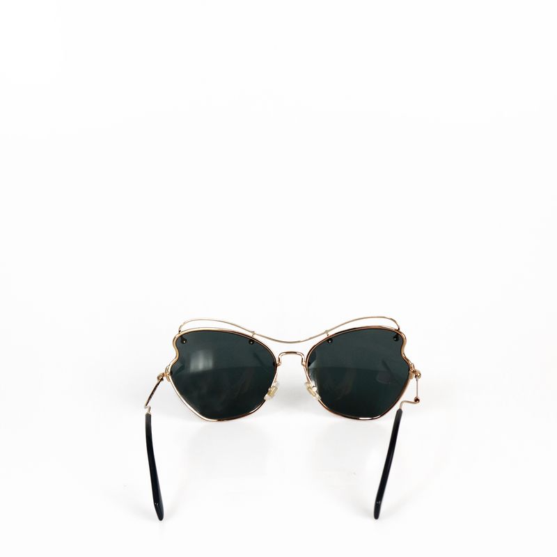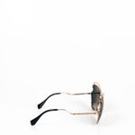 Óculos da marca Miu Miu, tamanho 15,5 cm C x 6,5 cm A, confeccionado em metal dourado e lentes pretas. Encontra-se em excelente estado de conservação.