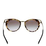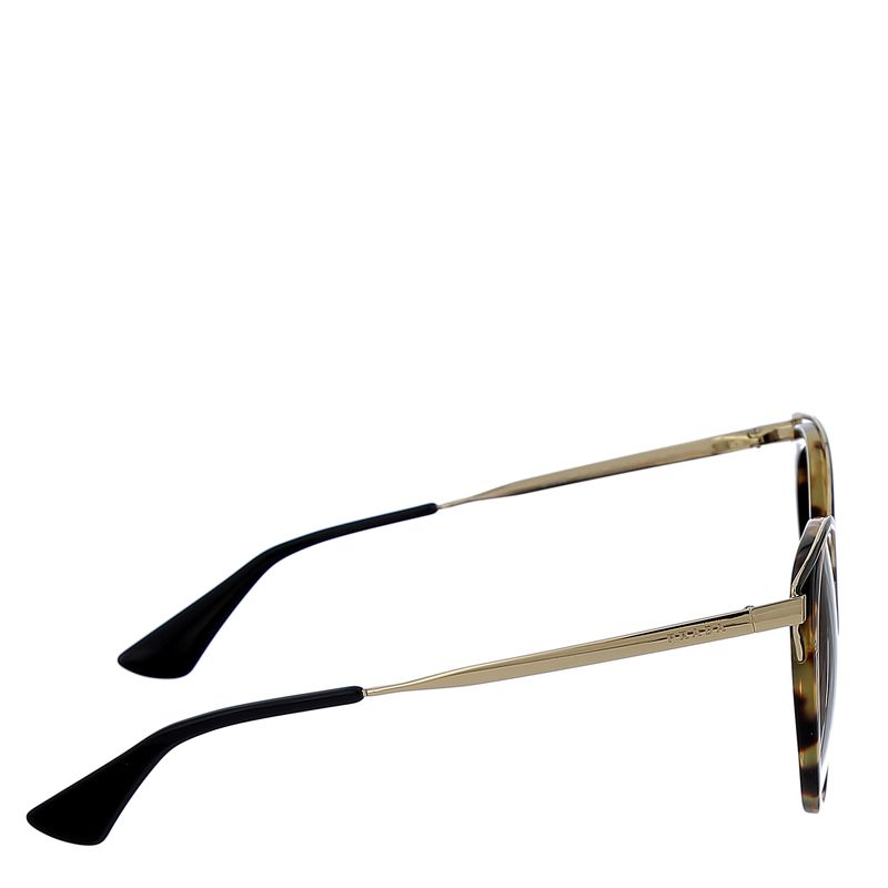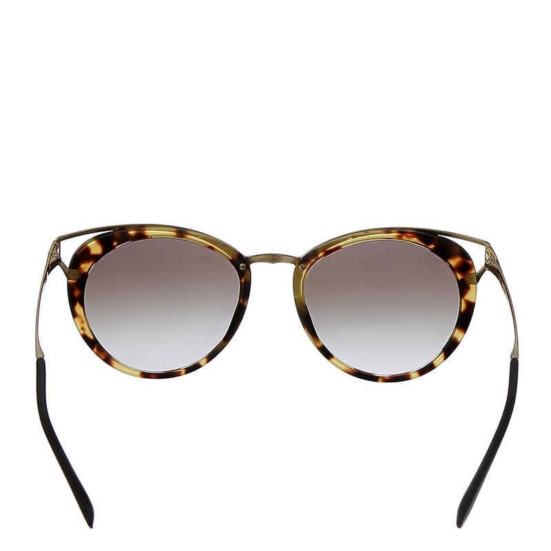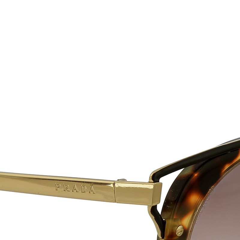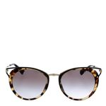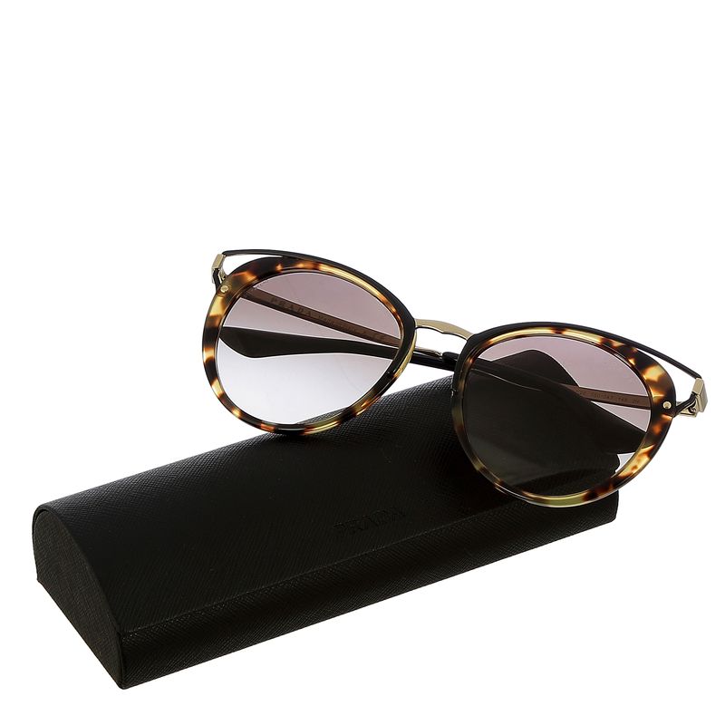 Óculos da marca Prada. Confeccionado em acetato na cor mescla e lente marrom degradê. Possui modelo gatinho. A peça se encontra em estado satisfatório, com leves marcas de uso aparentes principalmente na lente esquerda.