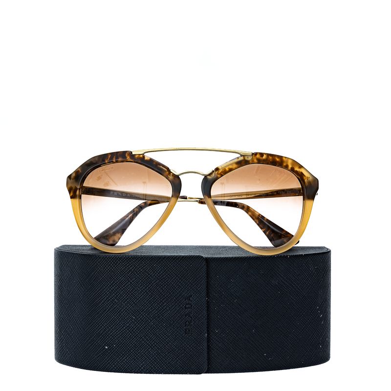 Óculos da marca Prada, modelo SPR 12Q. Confeccionado em acetato na cor bege e mescla marrom. A peça se encontra em excelente estado, muito bem conservada. br>