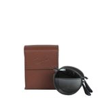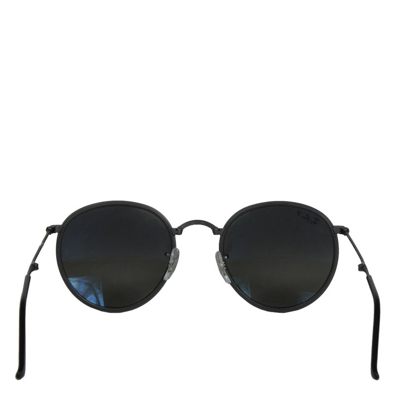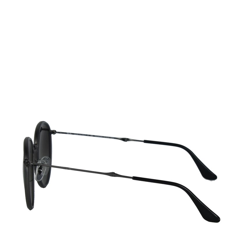 Óculos da marca Ray Ban, tamanho 13,5 cm C x 5 cm A, confeccionado em metal cor chumbo fosco e lentes pretas. O óculos possui sistema dobrável que com 6 cm. Encontra-se em excelente estado de conservação, sem marcas de uso.