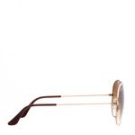 Óculos da marca Ray Ban, tamanho 13 cm C x 5 cm A. Confeccionado em metal dourado, com as lentes marrons. Encontra-se em excelente estado de conservação.