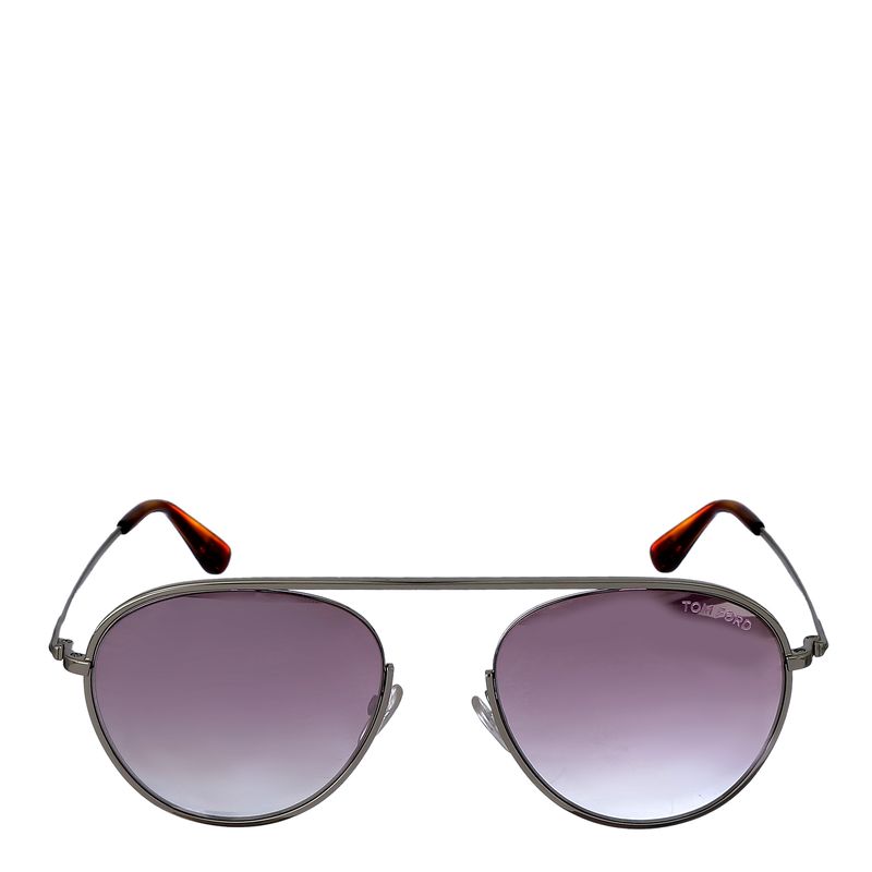 Óculos da marca Tom Ford. Confeccionado em metal prateado e lente espelhado. Possui modelo aviador e hastes com acetato marrom. A peça se encontra em ótimo estado, com levíssimas marcas de uso.