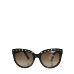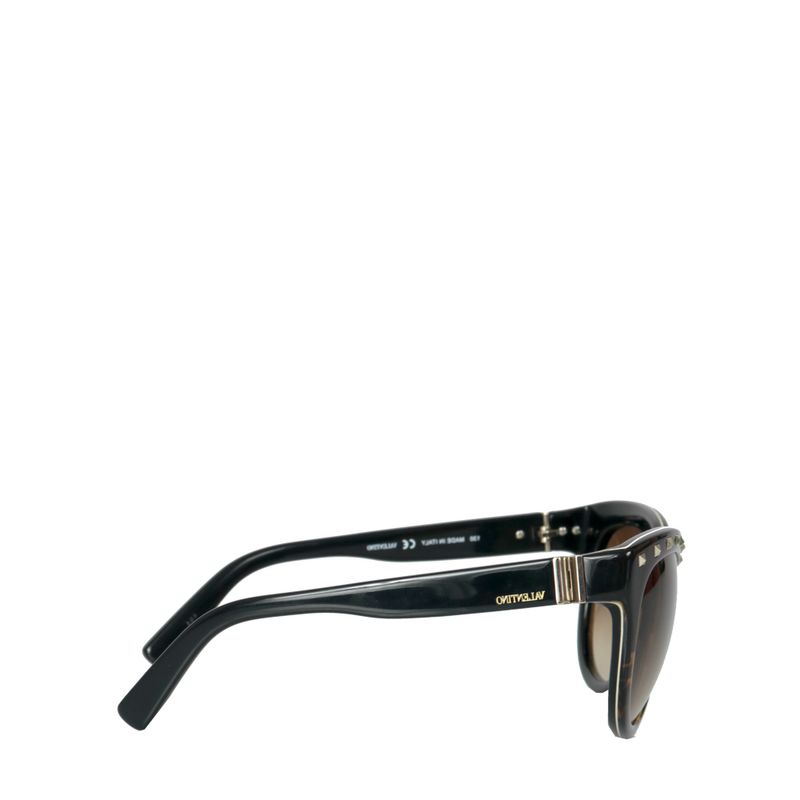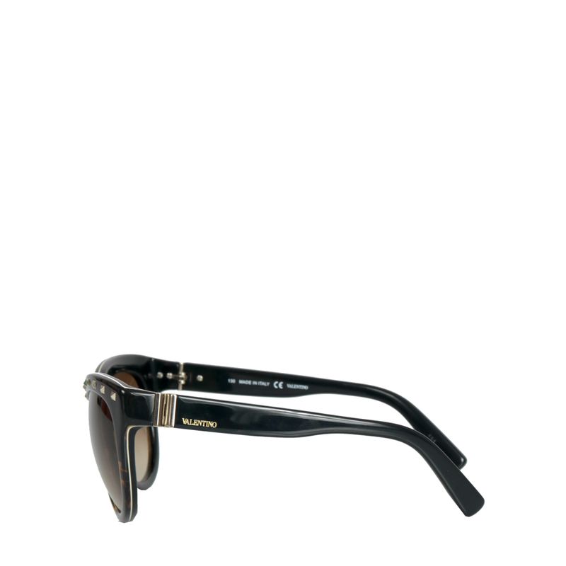Óculos da marca Valentino, tamanho 14cm C x 5,5 cm A, confeccionado em acetato preto e de tartaruga. O modelo conta com tachinhas na parte superior frontal e lentes pretas. Encontra-se em excelente estado de conservação, sem marcas de uso.