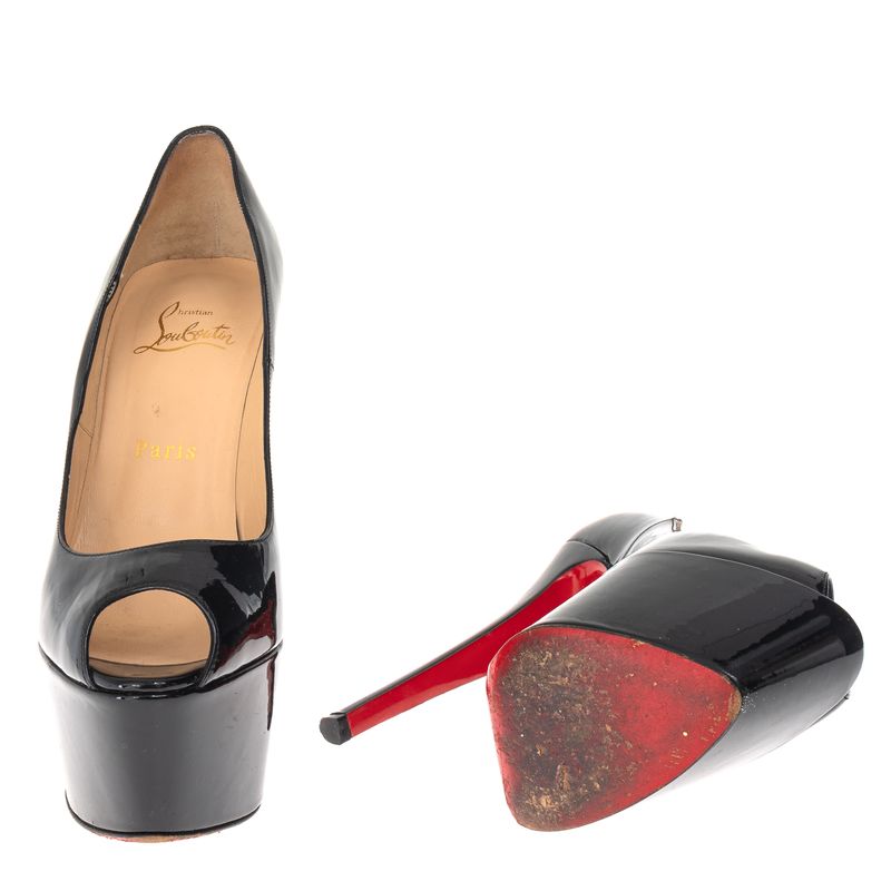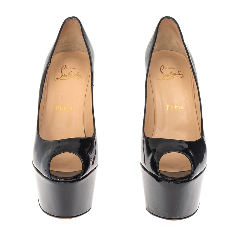 FemininoSapatosPeep ToeDe SaltoPeep Toe Christian Louboutin Verniz Preto