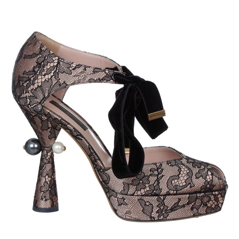 Peep Toe Louis Vuitton Renda Preto e Rosa