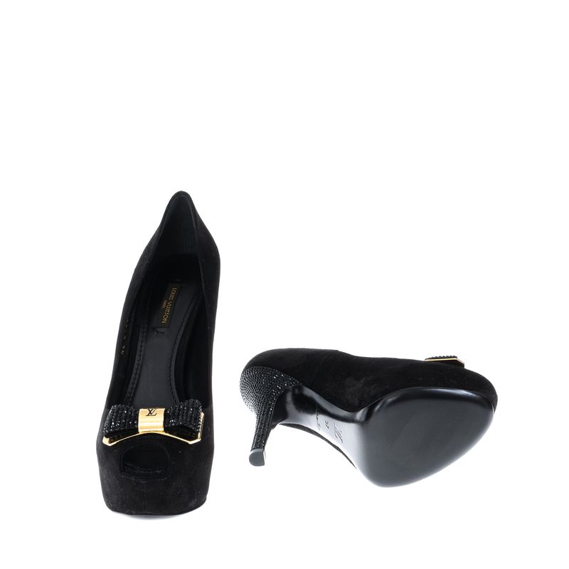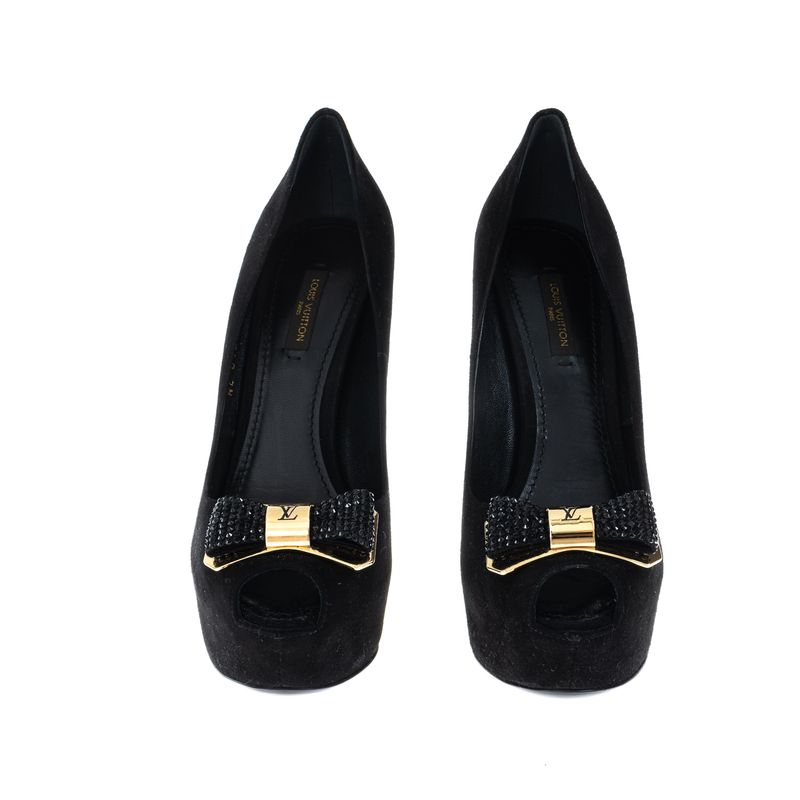 Peep Toe Louis Vuitton Strass Camurça Preto