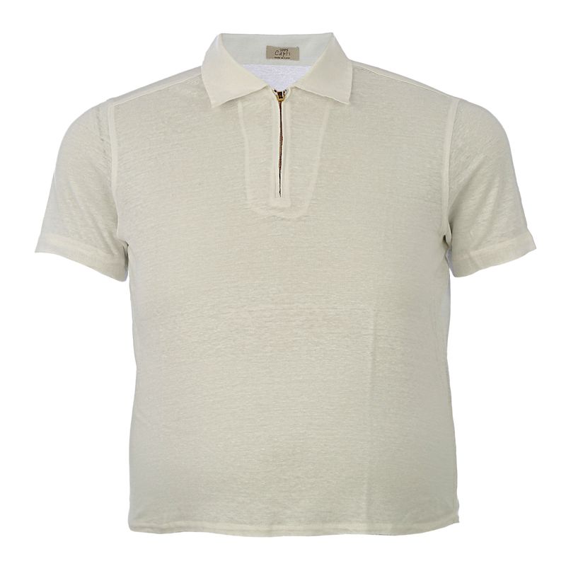 MasculinoRoupasT-ShirtsPolo 100% Capri Zíper Linho Branco