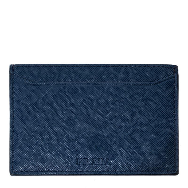 Porta Cartão Prada Couro Saffiano Azul