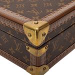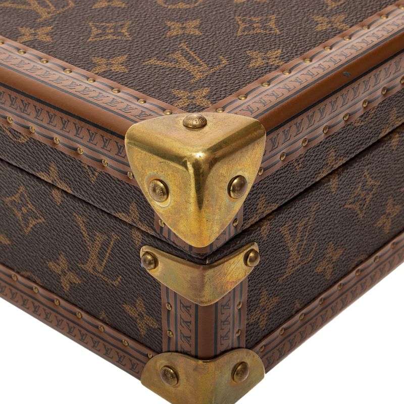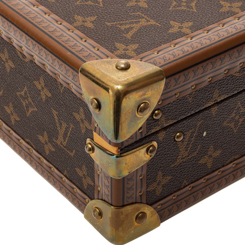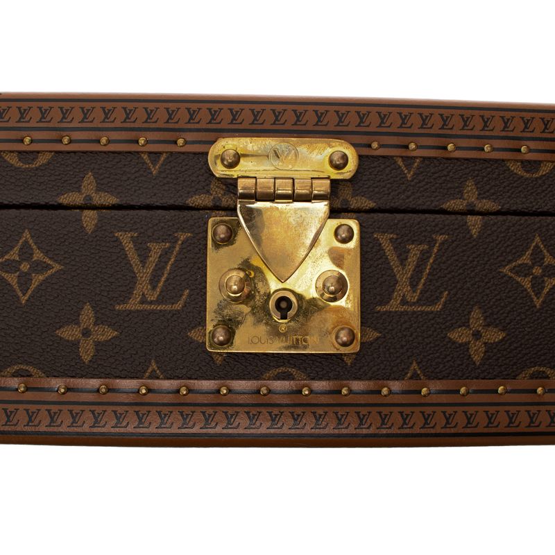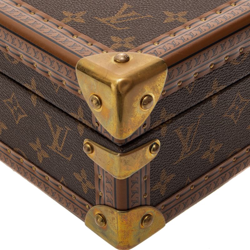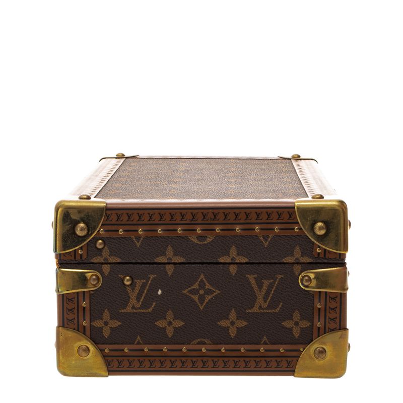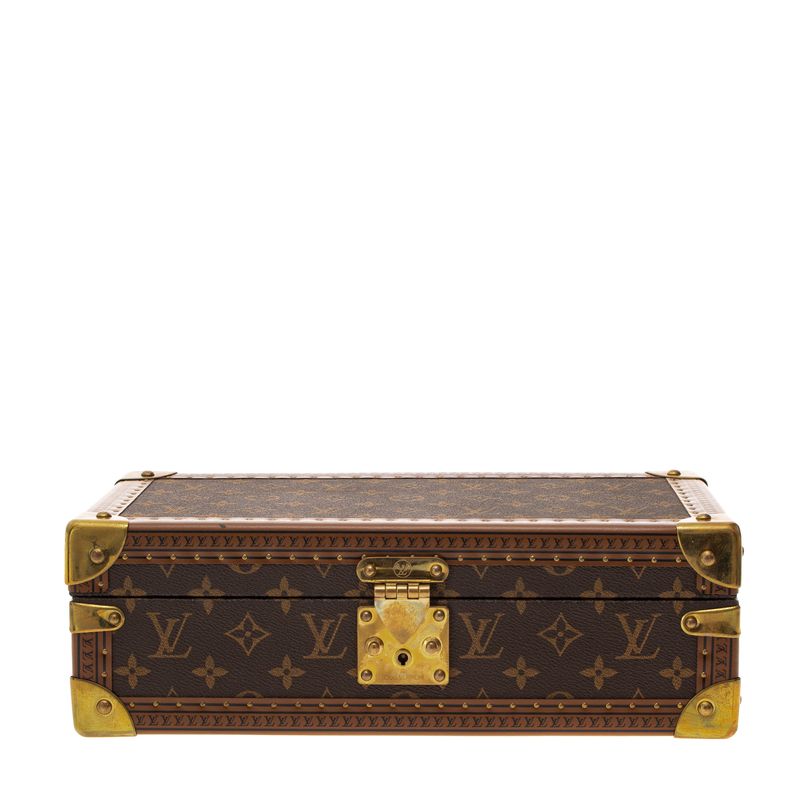 Porta Relógios da marca Louis Vuitton, modelo Coffret 8 Montres. Confeccionado no canvas com estampa monograma e ferragens douradas. O modelo possui fecho por dispositivo de encaixe com chave, comporta 8 diferentes modelos e possui um compartimento removível para ocultar outros objetos de valor. A peça se encontra em ótimo estado, com levíssimas marcas de uso e oxidações nas ferragens conforme fotos.