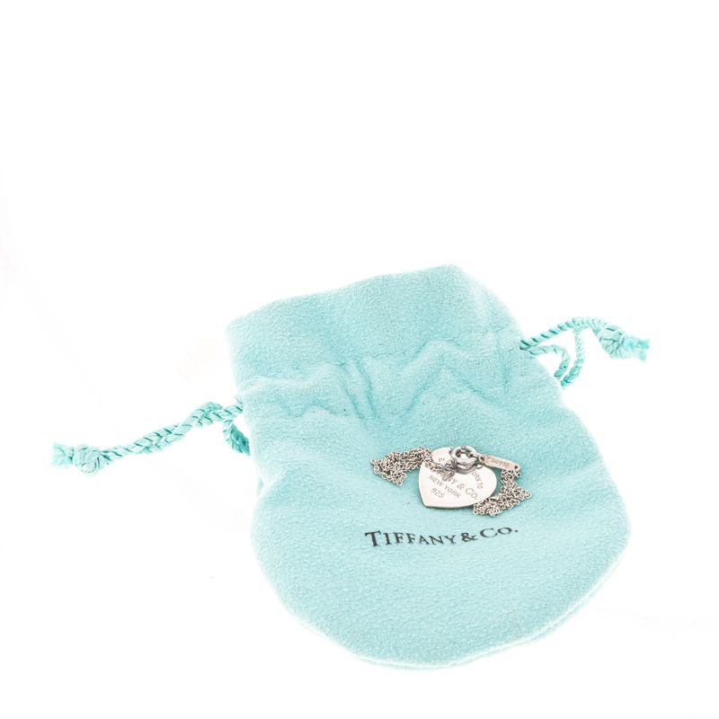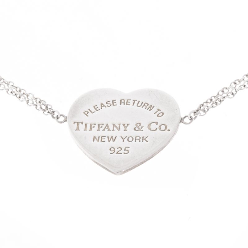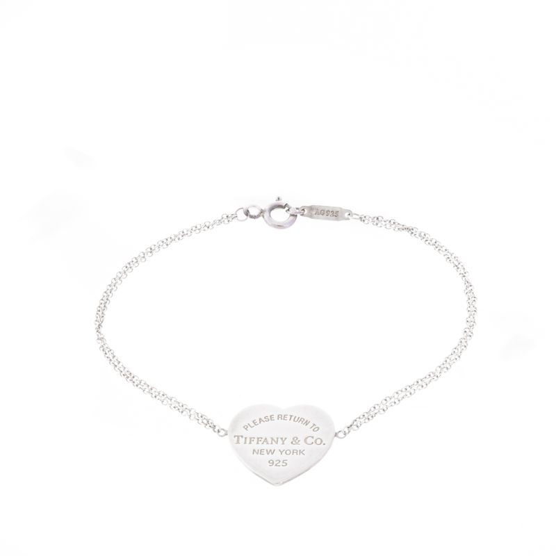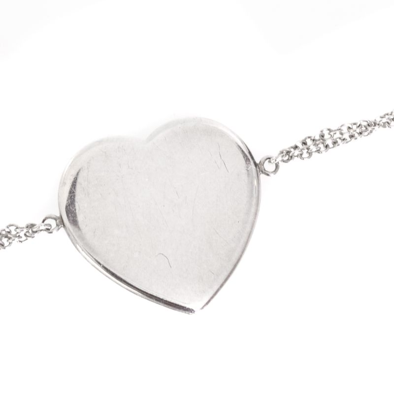 Pulseira da marca Tiffany & Co. tamanho 16 cm comprimento. Confeccionado em prata, pingente com formato de coração. A peça se encontra em bom estado, com leves marcas de uso, risco no coração.