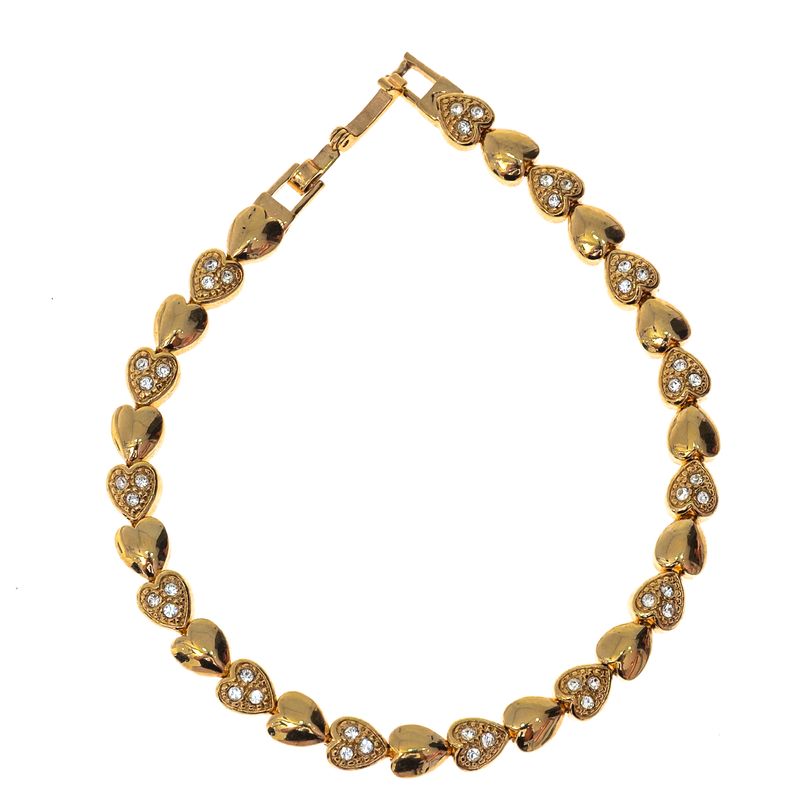 FemininoAcessórios de LuxoBijouxPulseirasPulseira Vintage Corações Cristais Dourada