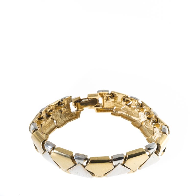 Pulseira Vintage, tamanho 19 cm comprimento. Confeccionado em metal prateada e dourada, fecho de encaixe. A peça apresenta marcas de uso e desgastes.